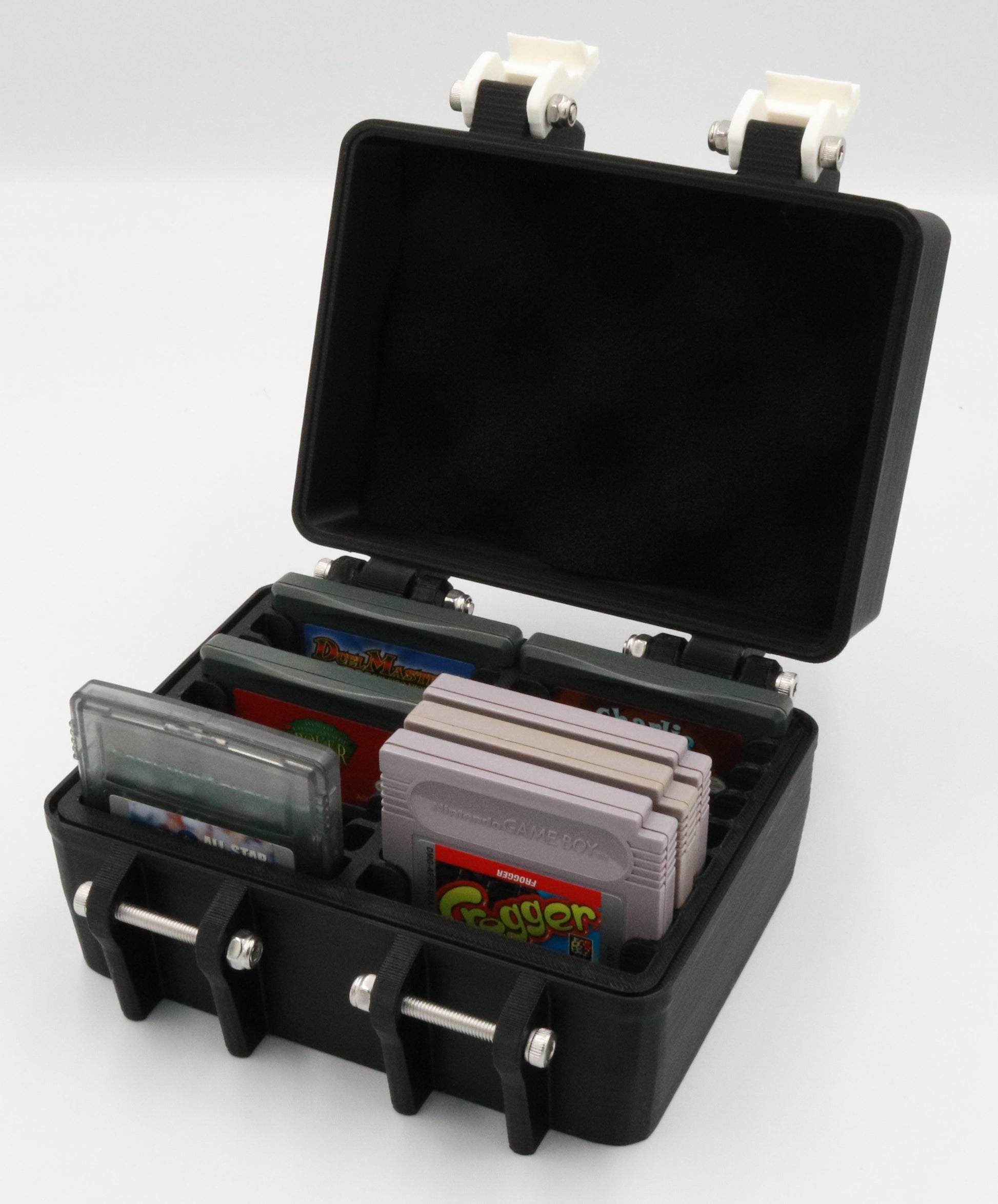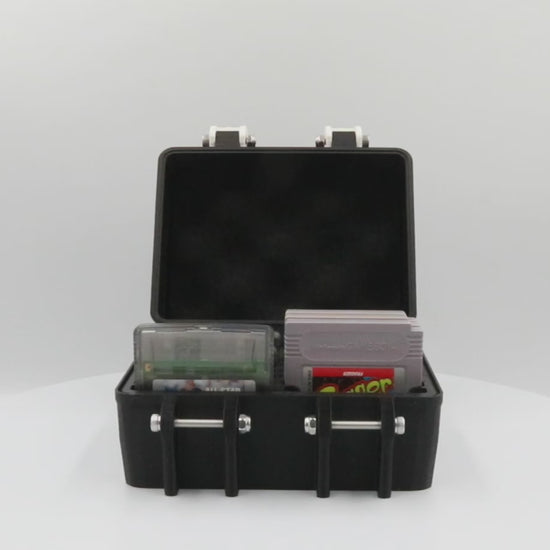 For sale is a carrying case for Nintendo Game Boy Games. It holds 18 games the slots. It holds Game Boy Advance, Game Boy Color, and Original Game Boy Games. The Game Boy Advance games are a loose fit due to the low height of the cartridges, but they will not fall out of the slots.