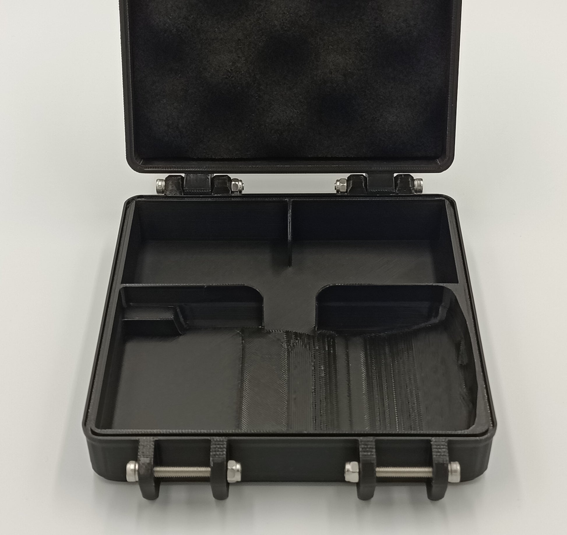 This is a rugged hard plastic design and everything has a tight and proper fit designed using a 3d model of the console, so it will remain secure while traveling without movement with only gentle force on the console. The hinges for the main body and clamps use stainless steel m4 bolts with nylon locking nuts to ensure that they won't loosen over time. The latches were made to be extra durable. This ensures that they will last a long time.