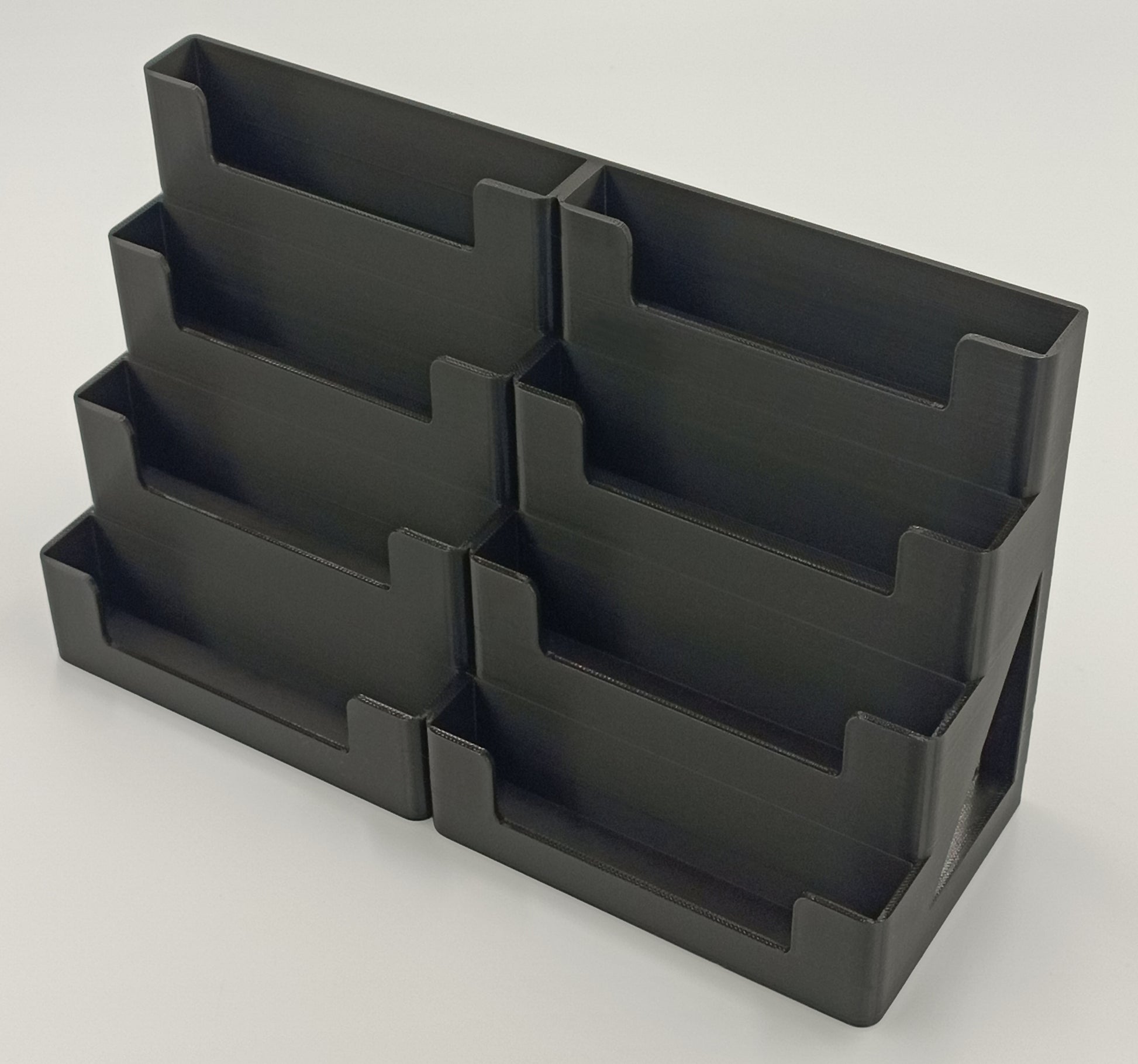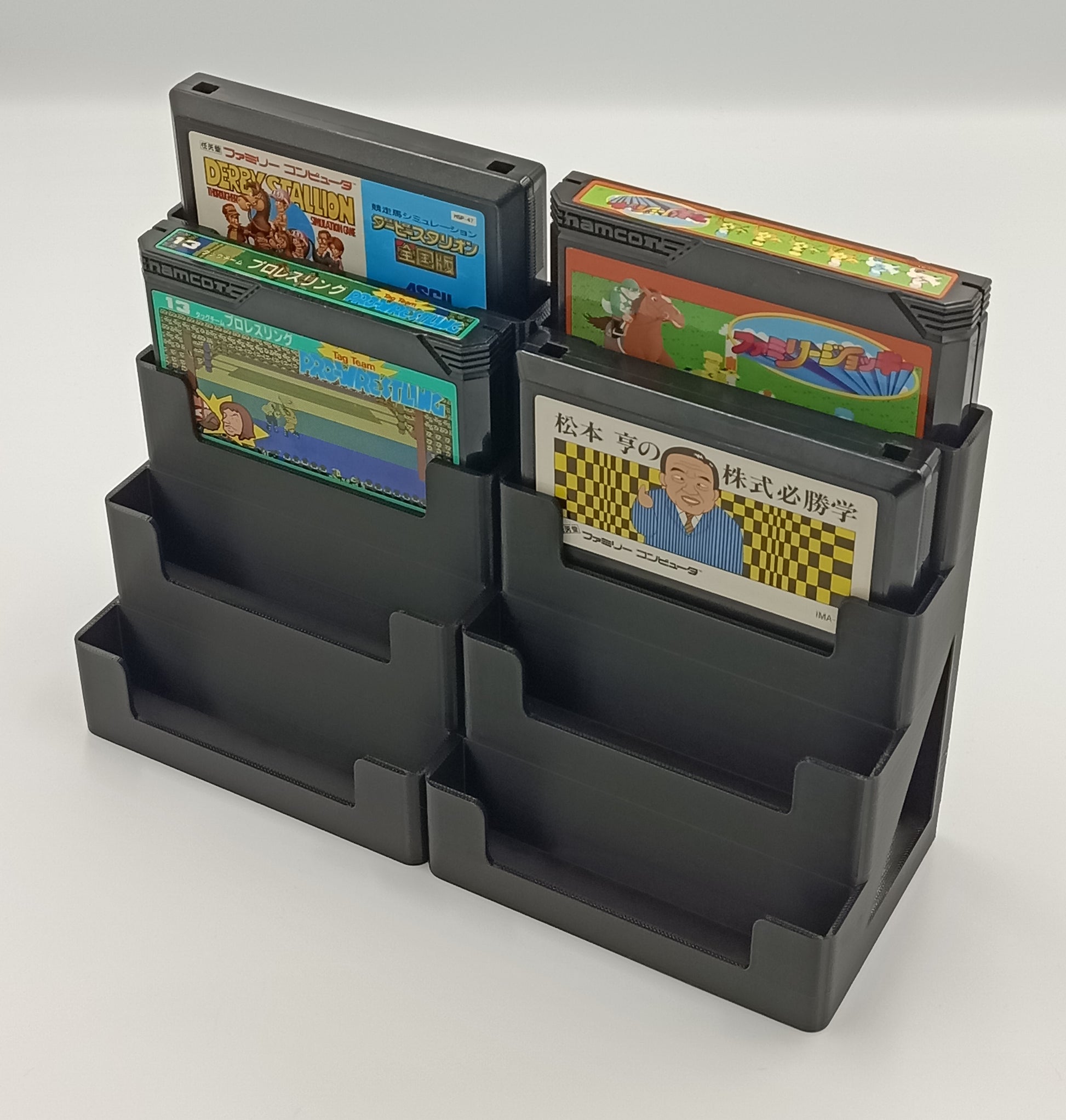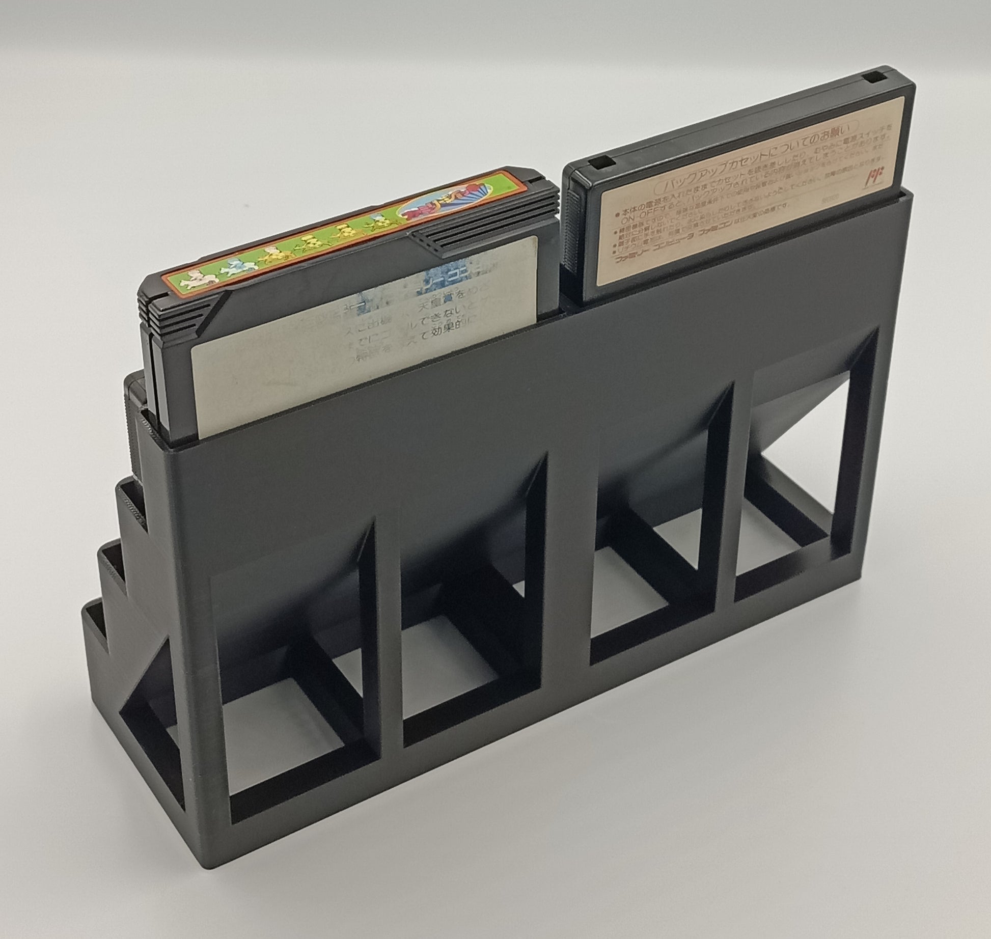 For sale is a display tower for Nintendo Famicom cartridges. It holds 8 games in the slots. Both styles of cartridges can fit as pictured.