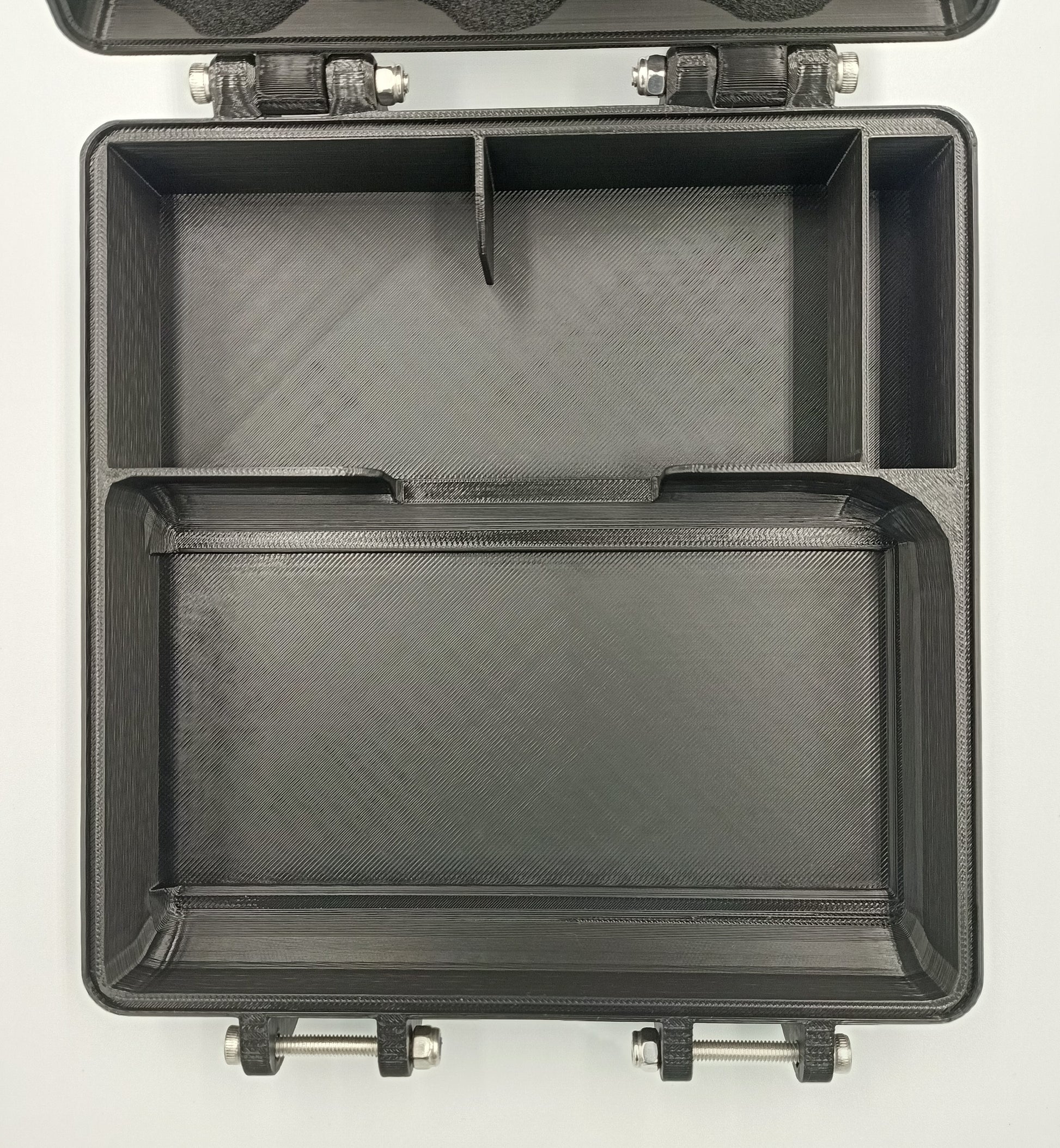 This is a rugged hard plastic design and everything has a tight and proper fit designed using a 3d model of the console, so it will remain secure while traveling without movement with only gentle force on the console. The hinges for the main body and clamps use stainless steel m4 bolts with nylon locking nuts to ensure that they won't loosen over time. The latches were made to be extra durable. This ensures that they will last a long time.