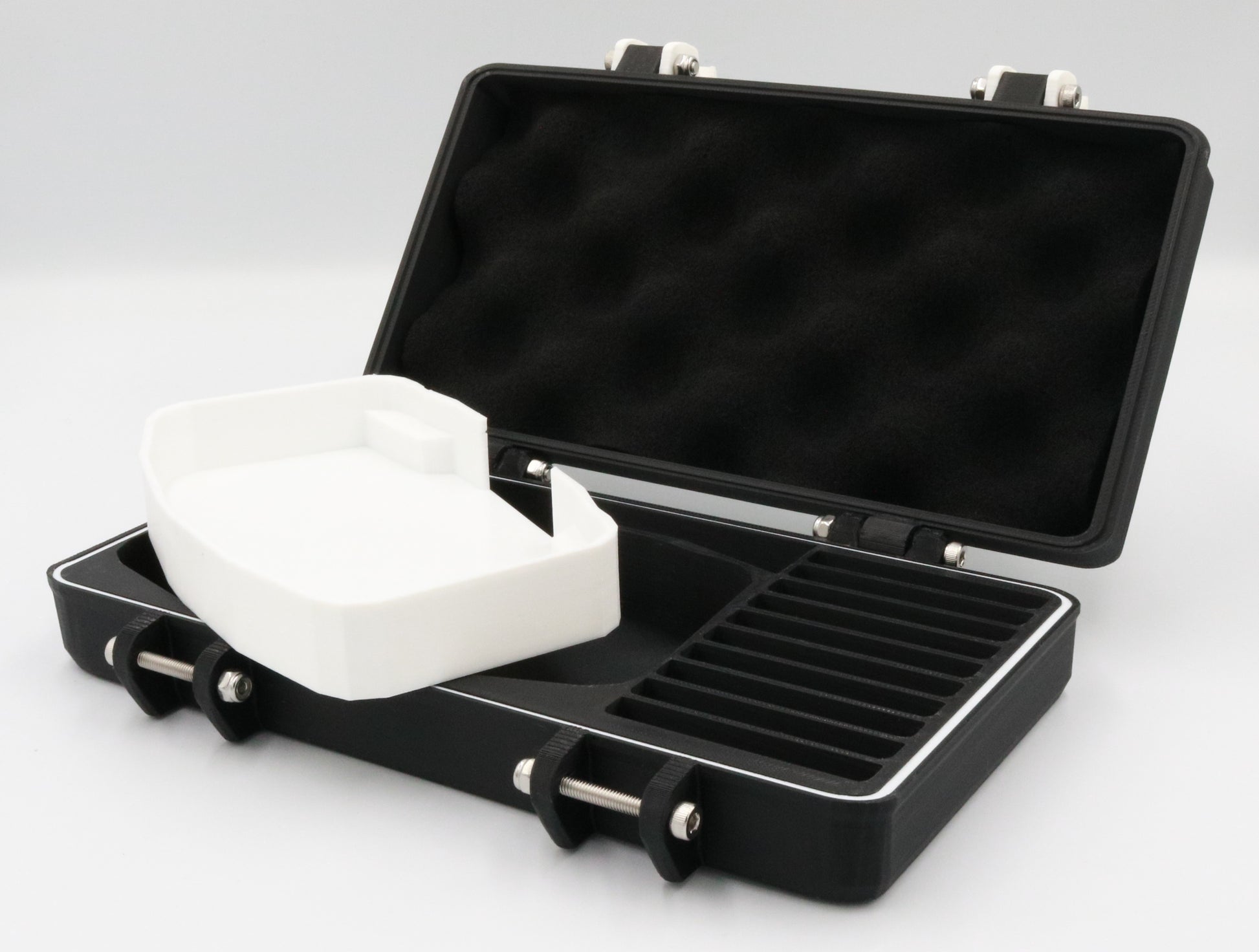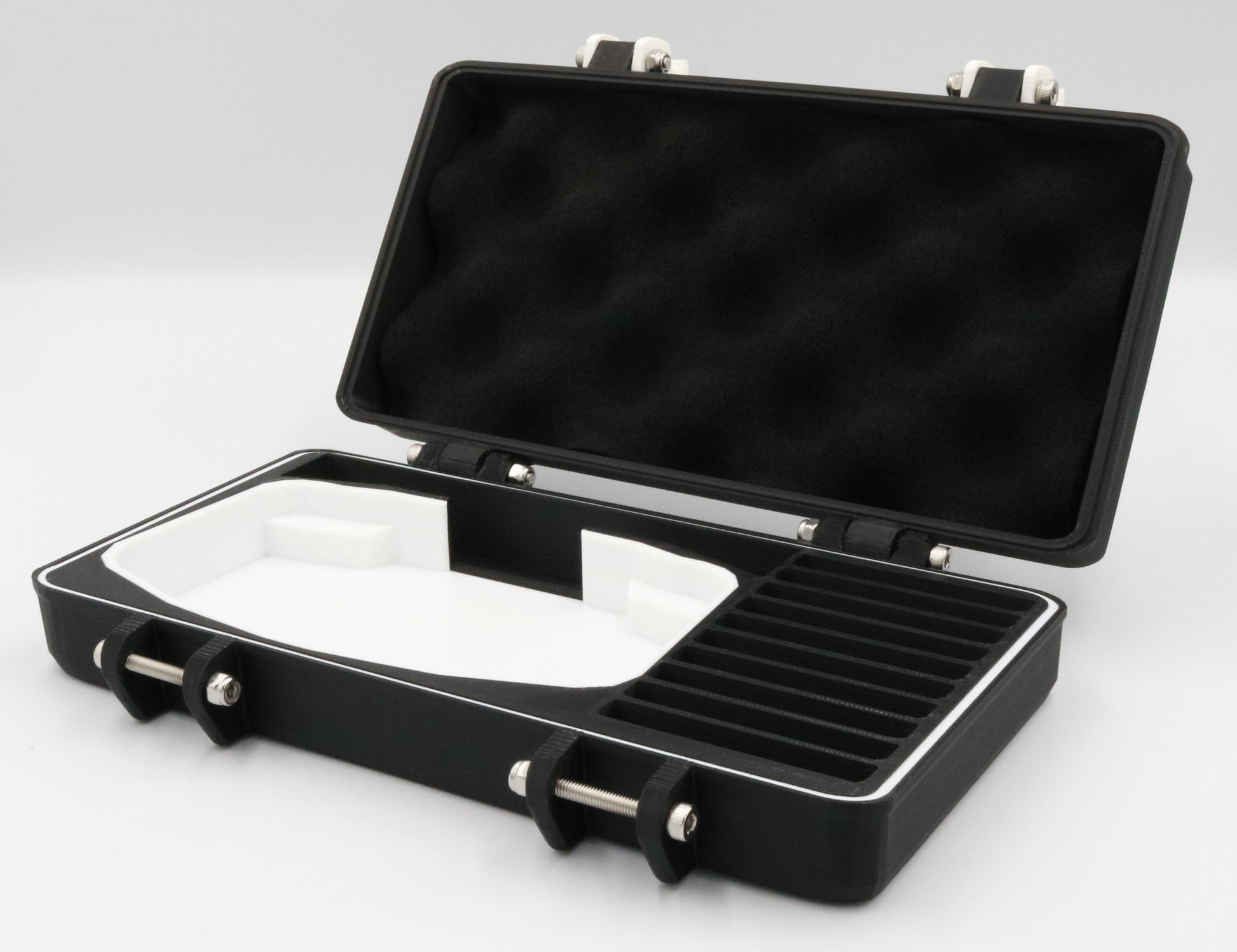 Precision-designed protective case featuring a removable 2mm TPU cushion, o-ring, game storage for GBA games, and a USB/accessory compartment.