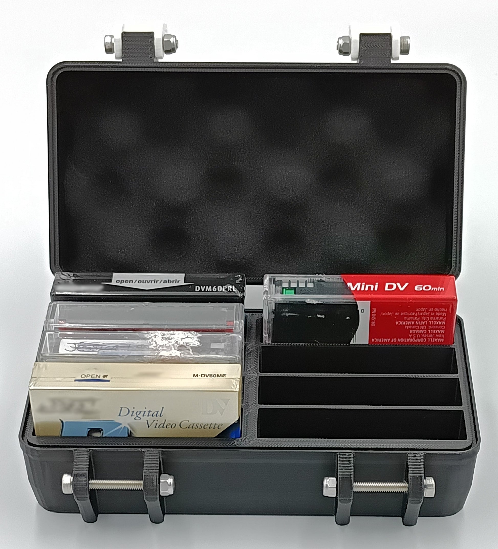 For sale is a carrying case for Digital Video (DV) Cassettes in their jewel cases. It holds 8 tapes the slots.
