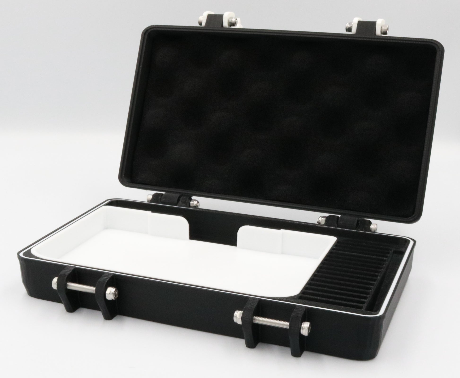 - Foam padding secures the top of the console